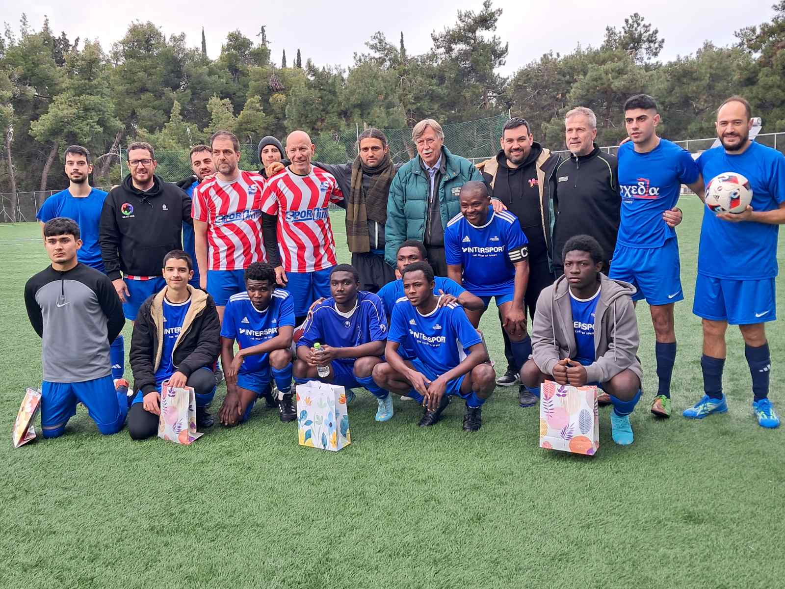 Στο γήπεδο του Παπάγου στο ημίχρονο της αναμέτρησης, SPORTIME – ΣΧΕΔΙΑ, το Δ.Σ. του Π.Σ.Α.Ε. ΜΜΕ και ο επίτιμος πρόεδρος του Συλλόγου, Νίκος Μάλλιαρης, χάρισαν δώρα στους νεαρούς αθλητές της «ΣΧΕΔΙΑΣ» ως ένδειξη αλληλεγγύης & τιμής για την αξιόλογη προσπάθεια, που κάνουν δια μέσω της άθλησης τους στο Πρωτάθλημα ποδοσφαίρου Τύπου και έδωσαν θερμές ευχές για τις γιορτινές μέρες και τη νέα χρονιά που ανατέλλει.